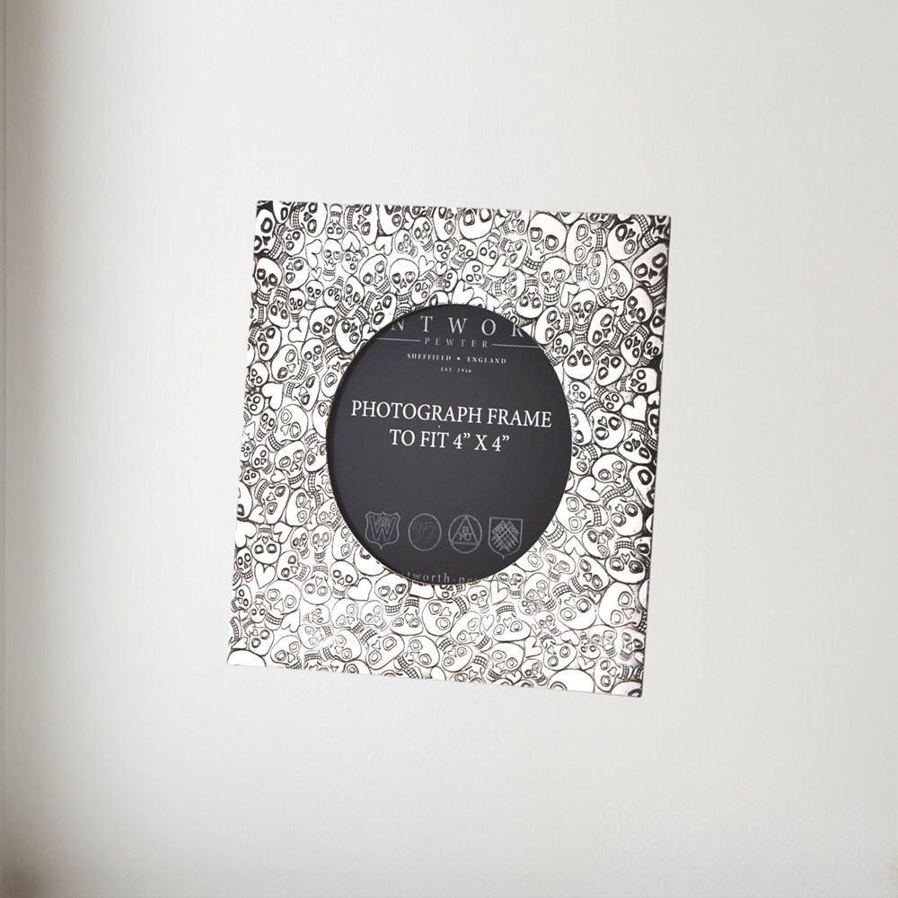 Love Skull Small Pewter 4"X4" Frame: The 'Love Skull Small Pewter 4"X4" Frame' pewter photo frame combines elegance and durability—ideal for showcasing special memories with a personalised plaque.